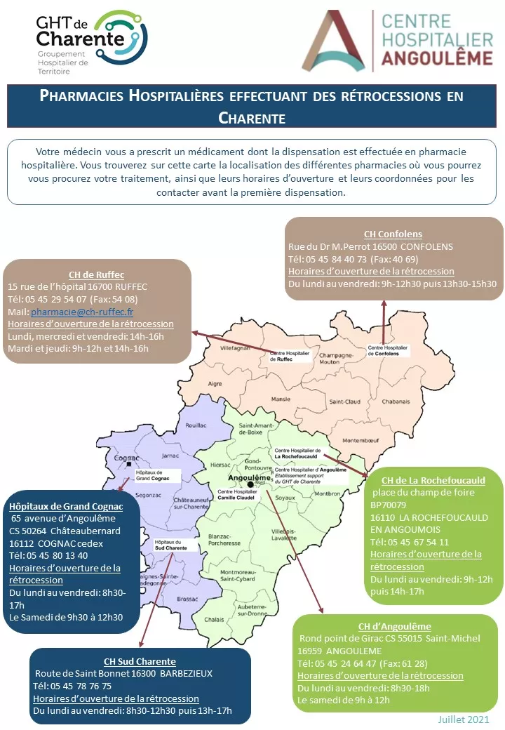 La pharmacie du Centre Hospitalier de Ruffec est autorisée à dispenser des médicaments aux patients non hospitalisés, elle fait de la rétrocession.